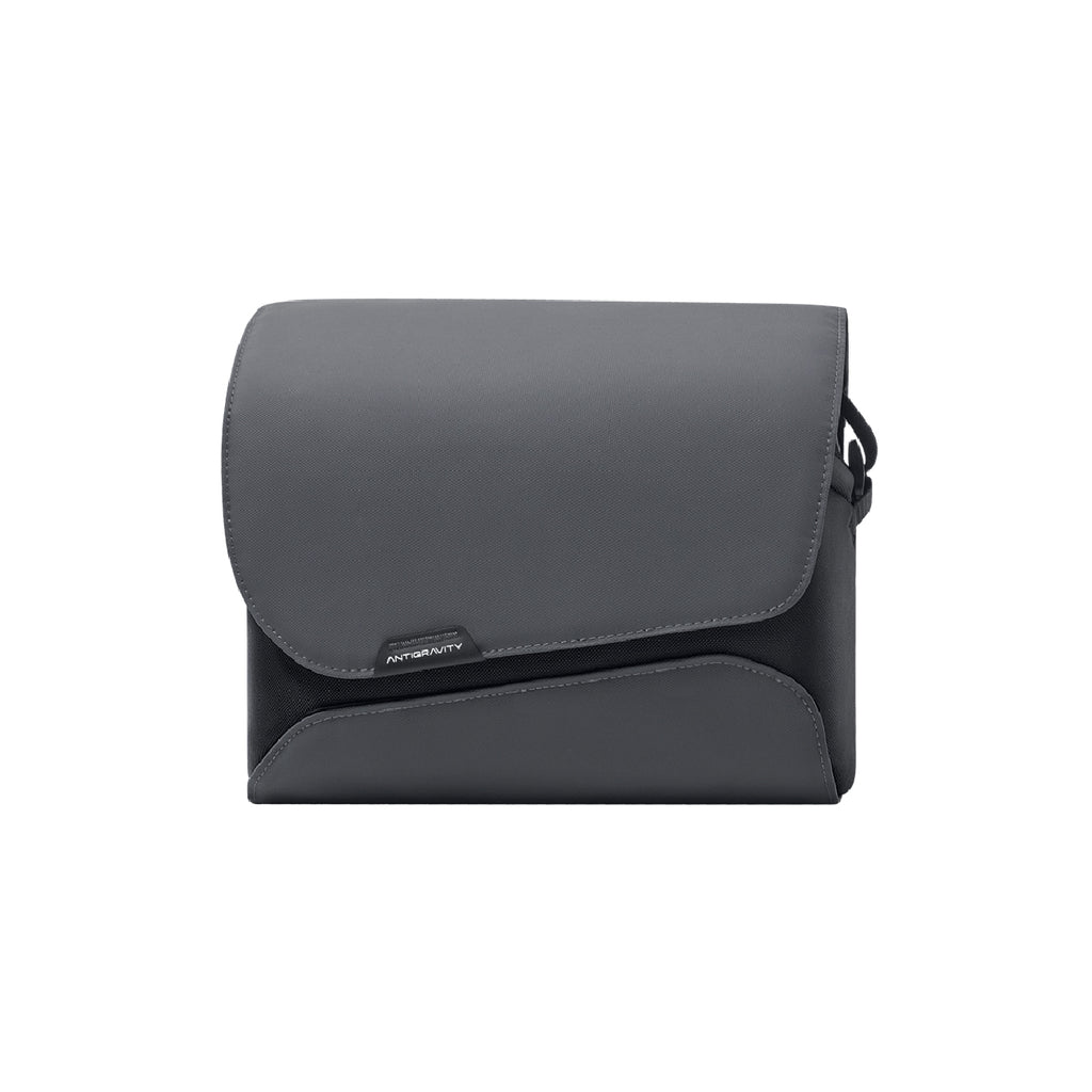 Antigravity A1 Sling Bag, designed to hold the Antigravity A1 Infinity Bundle. Built with multiple internal compartments, including a rear hidden pocket, to keep accessories and personal items organized. Includes a top carry handle and a side luggage strap for secure attachment to a suitcase.