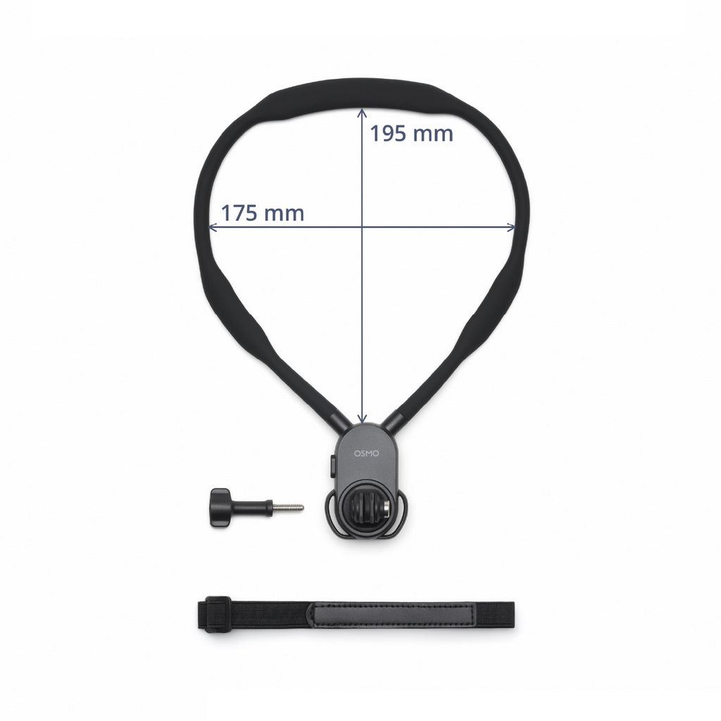 Capture first-person POV footage while mountain biking, boating, or hiking using this DJI Osmo Hanging Neck Mount Max, which fits comfortably around your neck thanks to its shapeable silica gel construction. Your Osmo 360 or Osmo Action series camera mounts onto the apparatus with its built-in action camera mount and included locking screw. A chest strap is also included to add stability and security to your shots.