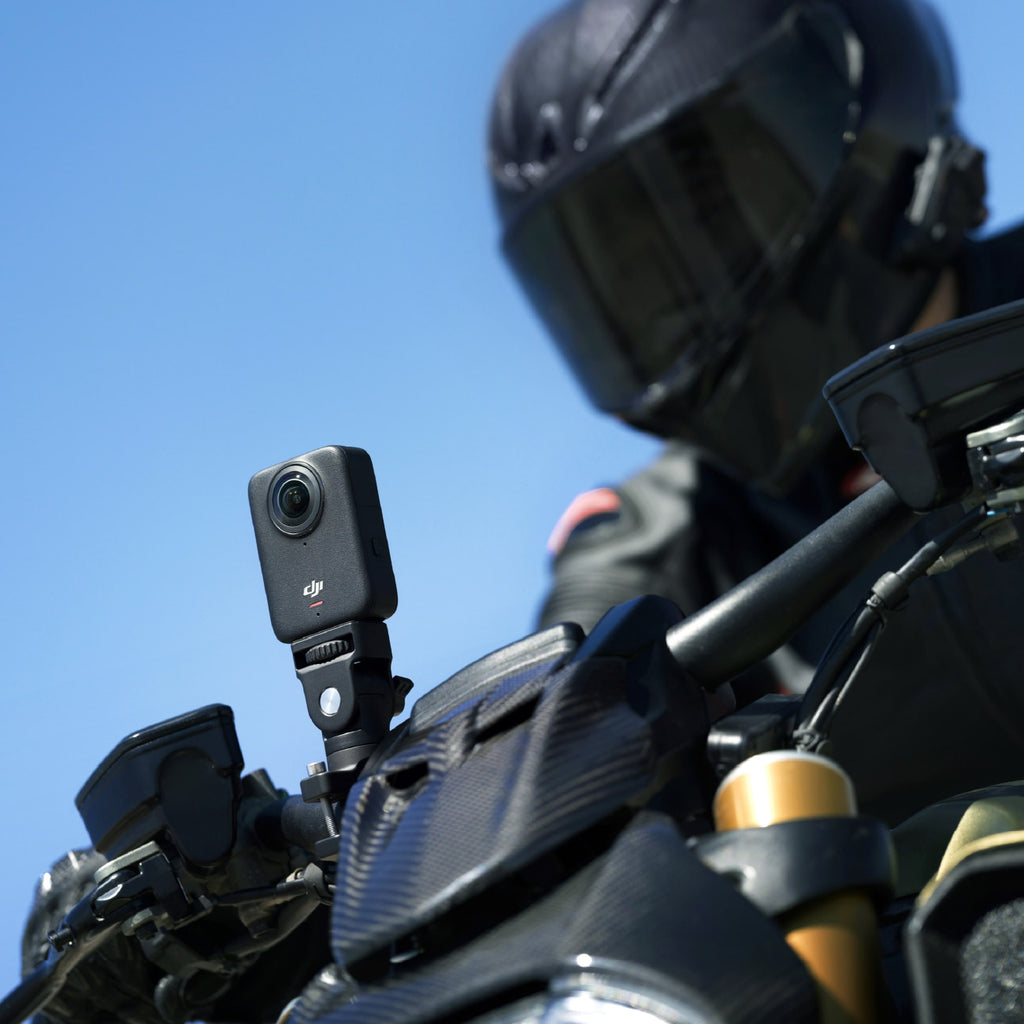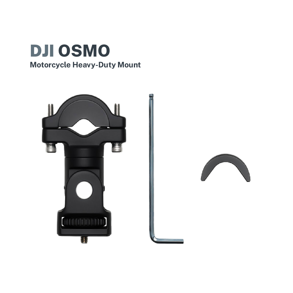 Mount your Osmo Action or 360 camera onto a motorcycle for fast-motion POV shots with the Osmo Motorcycle Heavy-Duty Mount from DJI. When paired with the separately available Motorcycle Heavy-Duty Clamp, this durable mount provides secure mounting, a tilting design, and vibration reduction for your action camera onto a handlebar of a bike or motorcycle. The tilting clamp can also be used with an optional selfie stick to extend your camera.
