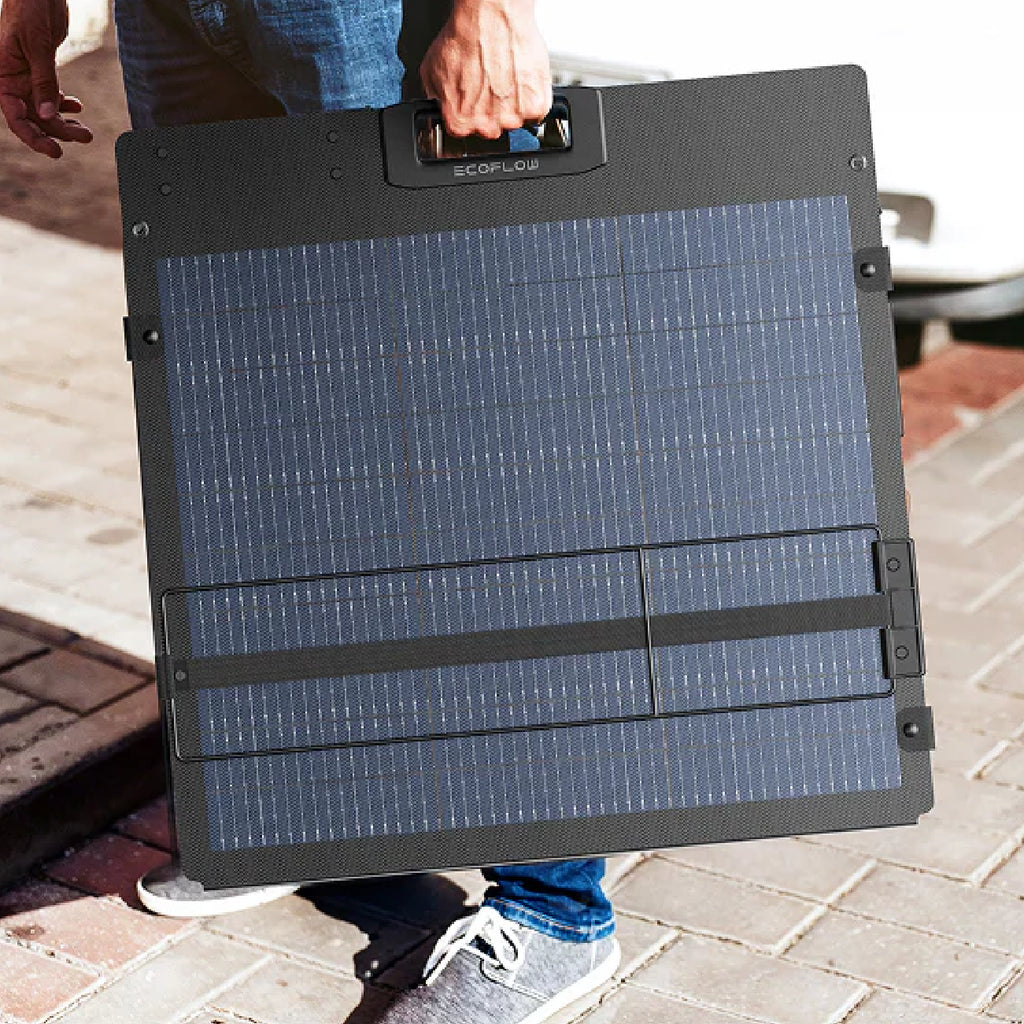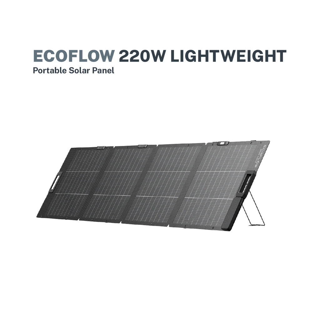 The Ecoflow 220W Lightweight Portable Solar Panel is designed to deliver high-performance, reliable, and portable solar energy wherever you need it. Built with advanced N-Type TOPCon monocrystalline silicon cells, it achieves an impressive 25% conversion efficiency—one of the highest in the industry—so you can generate more power in less time, even in low-light conditions. Its rated power output of 220W (±5W) ensures steady performance, while the integrated solar angle guide and adjustable bracket (30–60°) make it easy to maximize sunlight exposure throughout the day. Lightweight at only 7.2 kg (15.9 lbs) and foldable into a compact 23.6 × 22.5 × 1.3 in. size, it’s ultra-portable, making it perfect for road trips, camping, or as a dependable backup power source at home.