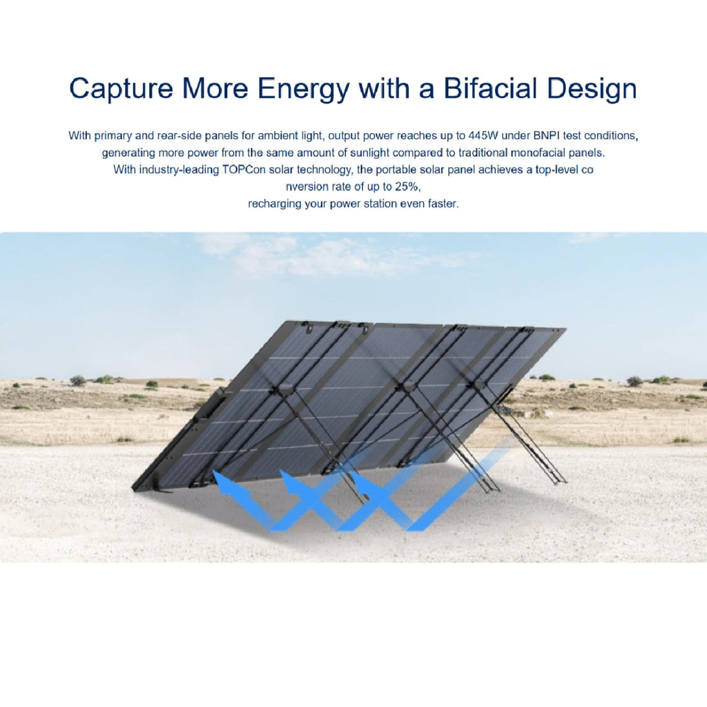 The EcoFlow 400W Foldable Solar Panel is a powerful and portable energy solution built for outdoor use and home backup. With high-efficiency monocrystalline cells (22.6%), it delivers up to 400W of power and can generate around 2,000Wh of clean energy daily in good weather. Lightweight for its size at 12.5kg (19kg with cover), it folds into a compact carrying case that doubles as a kickstand, letting you adjust the angle for maximum sunlight. Built with a durable ETFE protective layer and IP68 waterproof rating, it’s tough enough for any environment, while the standard MC4 connectors ensure easy compatibility with EcoFlow power stations and other solar setups—making it a reliable, eco-friendly choice for off-grid adventures or emergency backup.