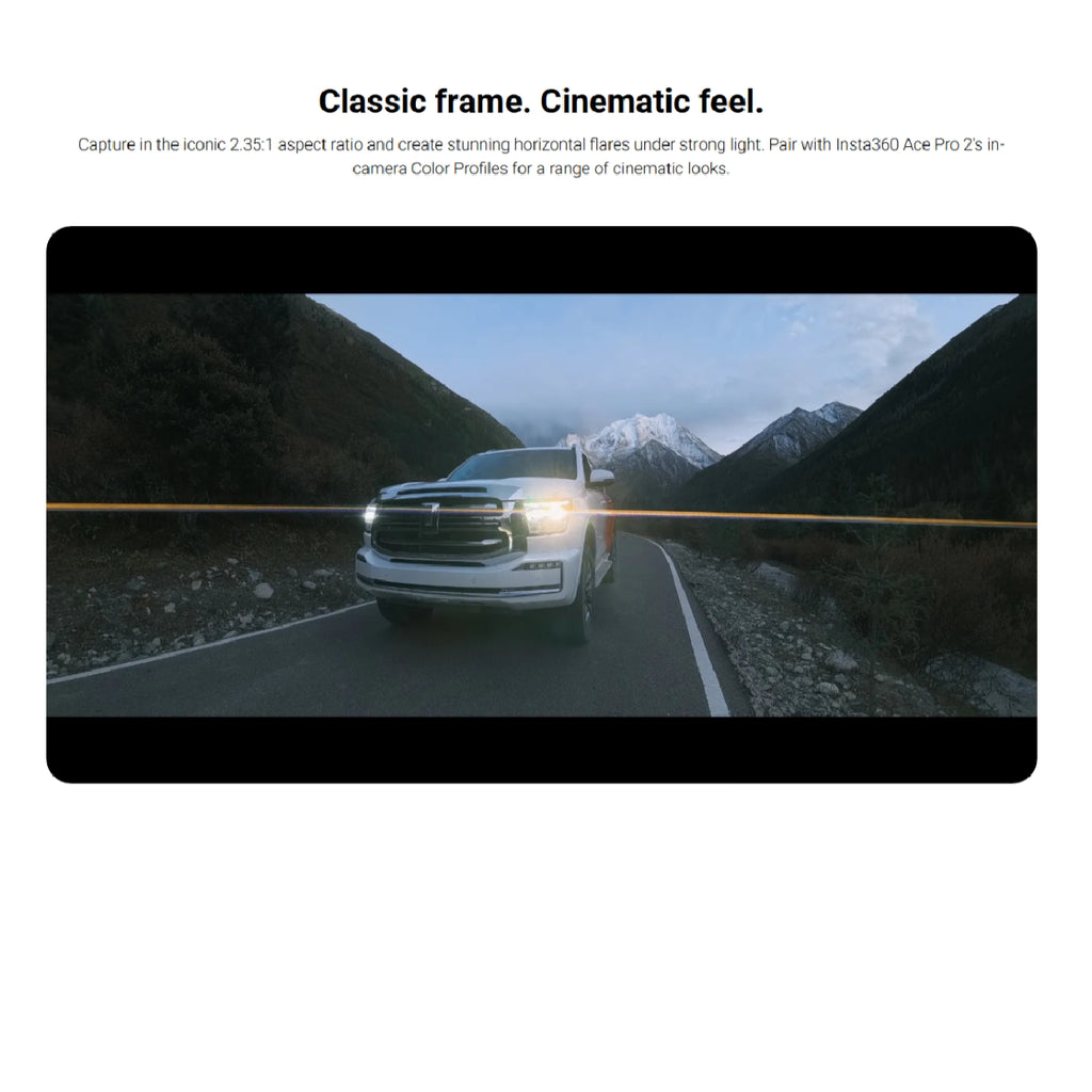 Recreate the magic of the big screen with a cinematic 2.35:1 aspect ratio. Update your camera's firmware and Insta360 app to the latest version to experience the full range of features.