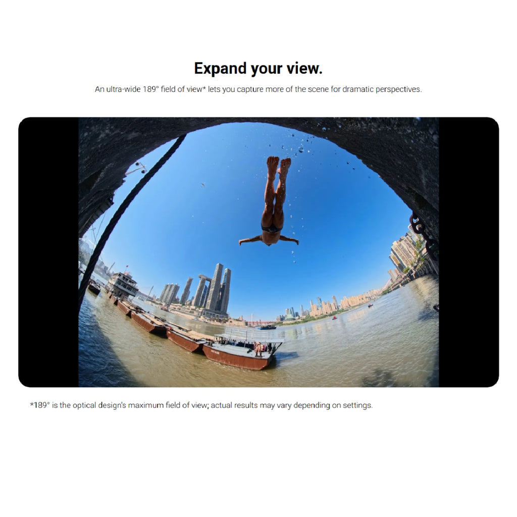 Removable lens for an ultra-wide 189º field of view. Perfect for immersive, cinematic shots. Get a 36% taller and 32% wider field of view than the regular Insta360 Ace Pro 2 lens. For the best experience, update the firmware and Insta360 app to the latest version.
