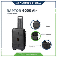 The Raptor Hard Case Air - Trolley 6000 is a heavy-duty, wheeled protective case built for transporting sensitive gear with maximum security and ease.